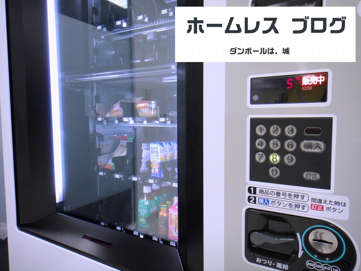 ホームレスは、自動販売機をめぐり